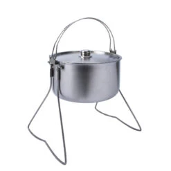 Le Kit Ultime de Base Camp Kelly Kettle comprend la Base Camp, un ensemble de cuisson, un poĂȘle Hobo, un ensemble de tasses, un ensemble de plats, un support de pot et un sac de transport.