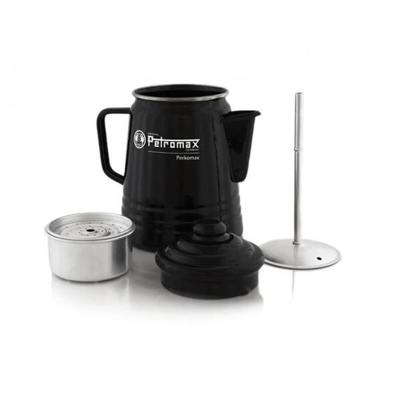 Le Perkomax de Petromax, un percolateur à café émaillé noir de 1,5L, parfait pour préparer un café riche et plein de corps.