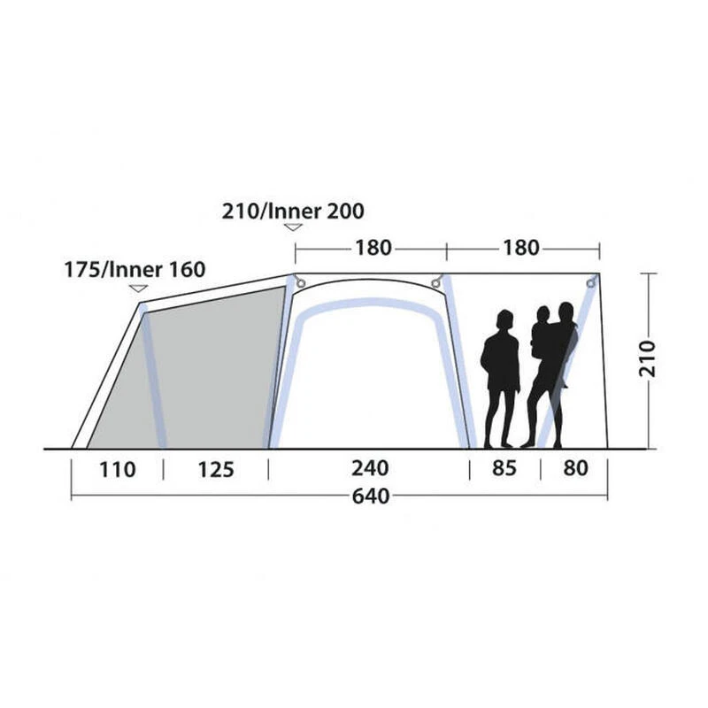 La tente Outwell Oakdale 5PA est un modèle gonflable en polyester composée de deux chambres pouvant accueillir 5 personnes.